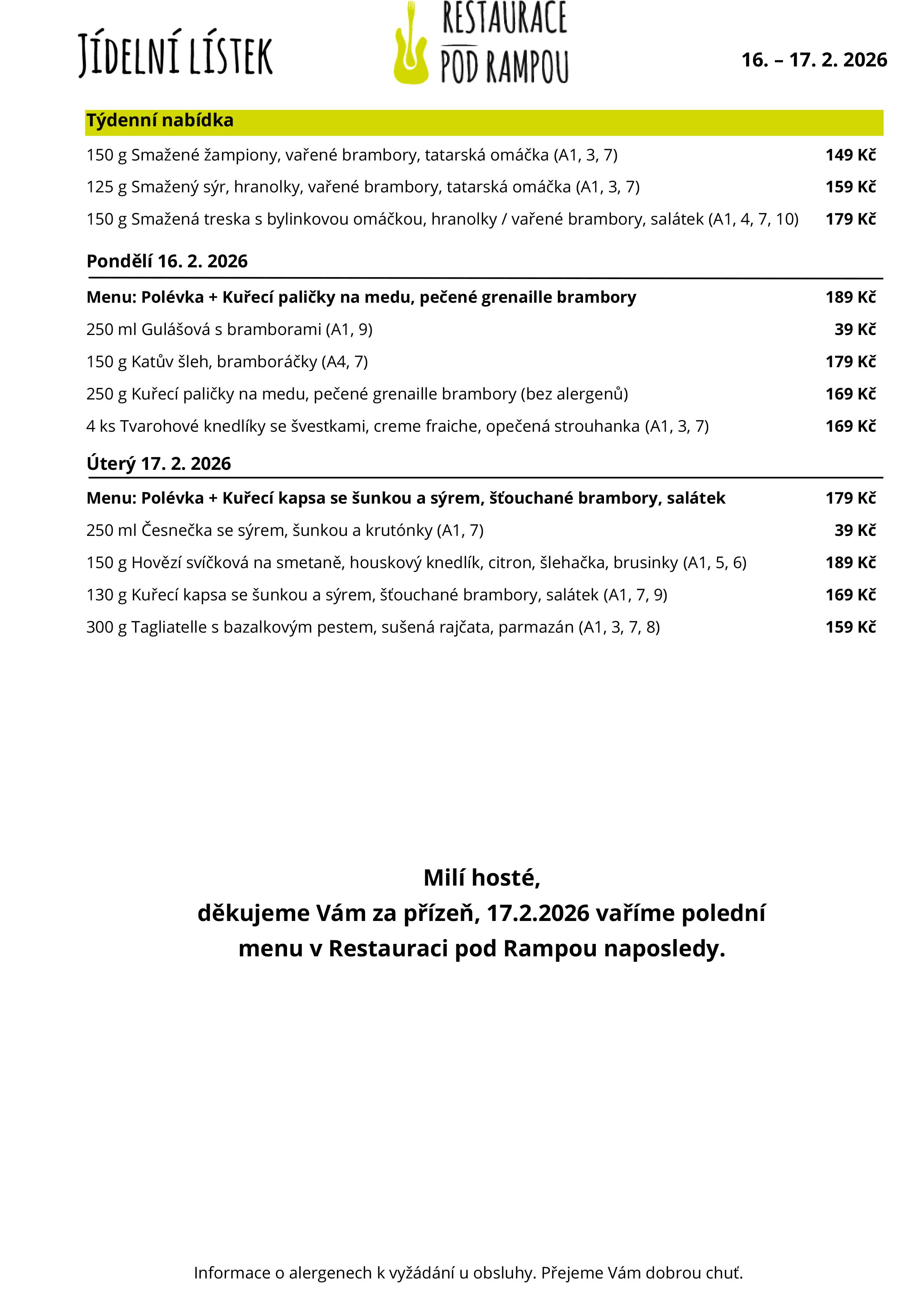 POLEDNÍ MENU